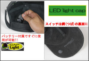 帽子の鍔(つば)先端に内蔵されている白色LEDで漆黒の闇を明るく照らせ!!